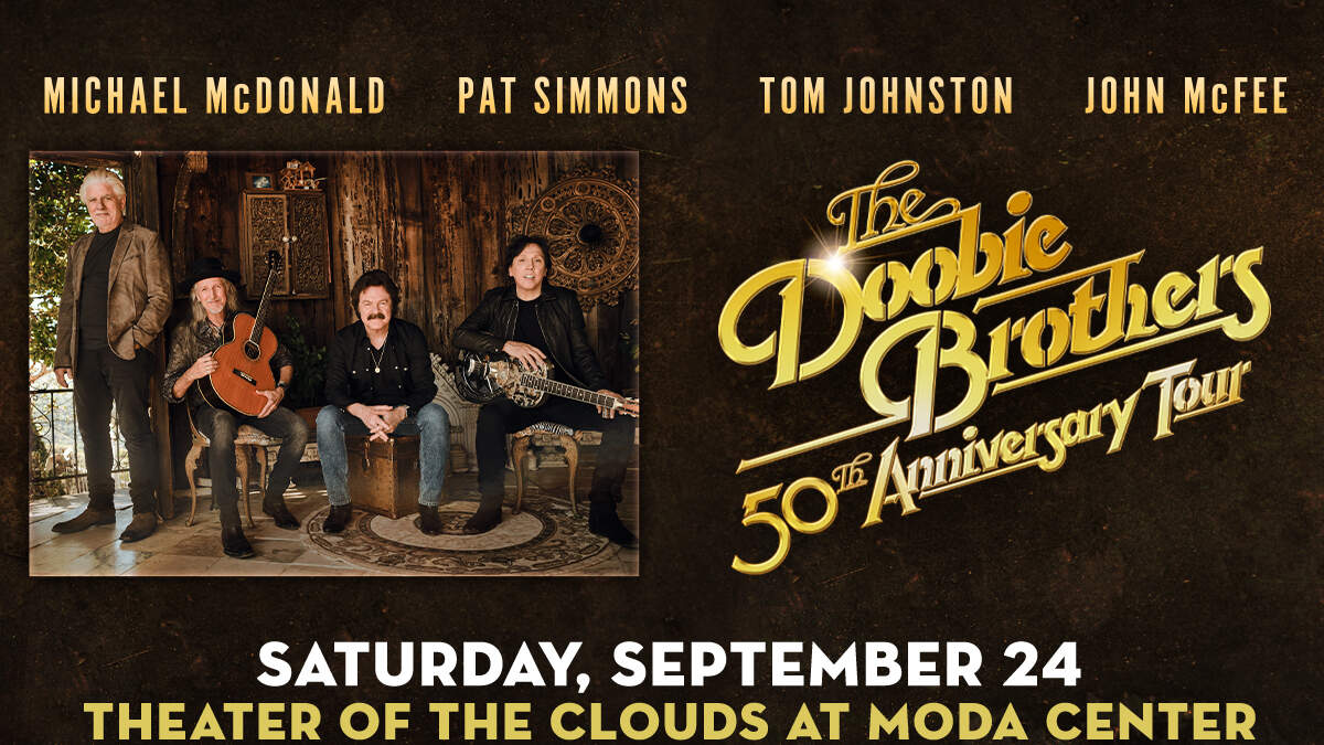 Don't miss your chance to see the multi Grammy winning, and Vocal Artist Hall of Fame artists The Doobie Brothers as they bring their 50th Anniversary Tour to the NW for an incredible evening of hits Saturday night, September 24th at the Theater of the Clouds at Moda Center. Get your tickets now at Ticketmaster.com!