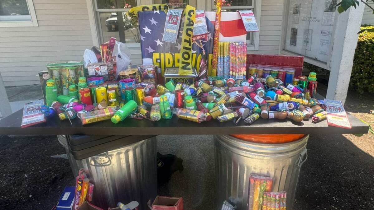 Two oversized trash cans were filled with fireworks. This is the 15th year the city has offered to take fireworks to keep them from being used during the Fourth of July.