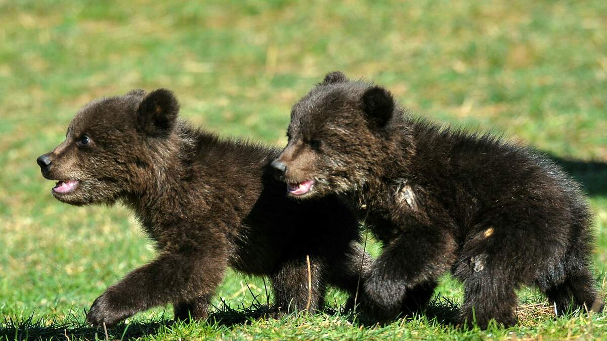 Bear Cubs Play With Flag On Golf Course Green
