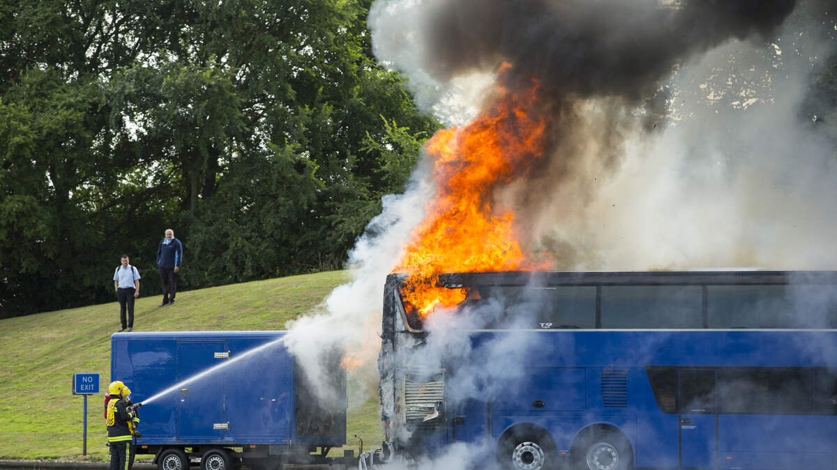 Moment Cop Rushed onto a Burning Bus to Save Students